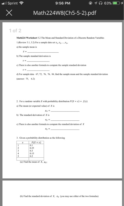 Discrete Math Expected Value Worksheet - Solved Il Sprint令 9 56 Pm Q 63 D Chegg Com /. Some students love math — others not so much. In fact, some students find math to be difficult and dislike it so much that they do everything they can to avoid it. Get introductions to algebra, geometry, trigonometry, precalculus and calculus or get help with current math coursework and ap exam preparation. Enjoy the five worksheets with answers on the second page. Many kids balk at completing math worksheets.